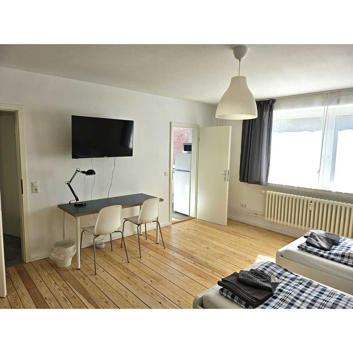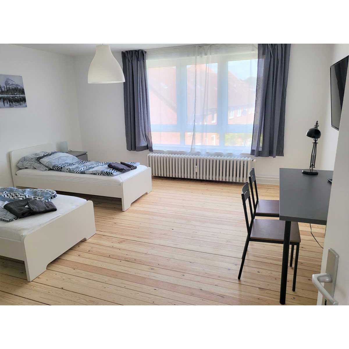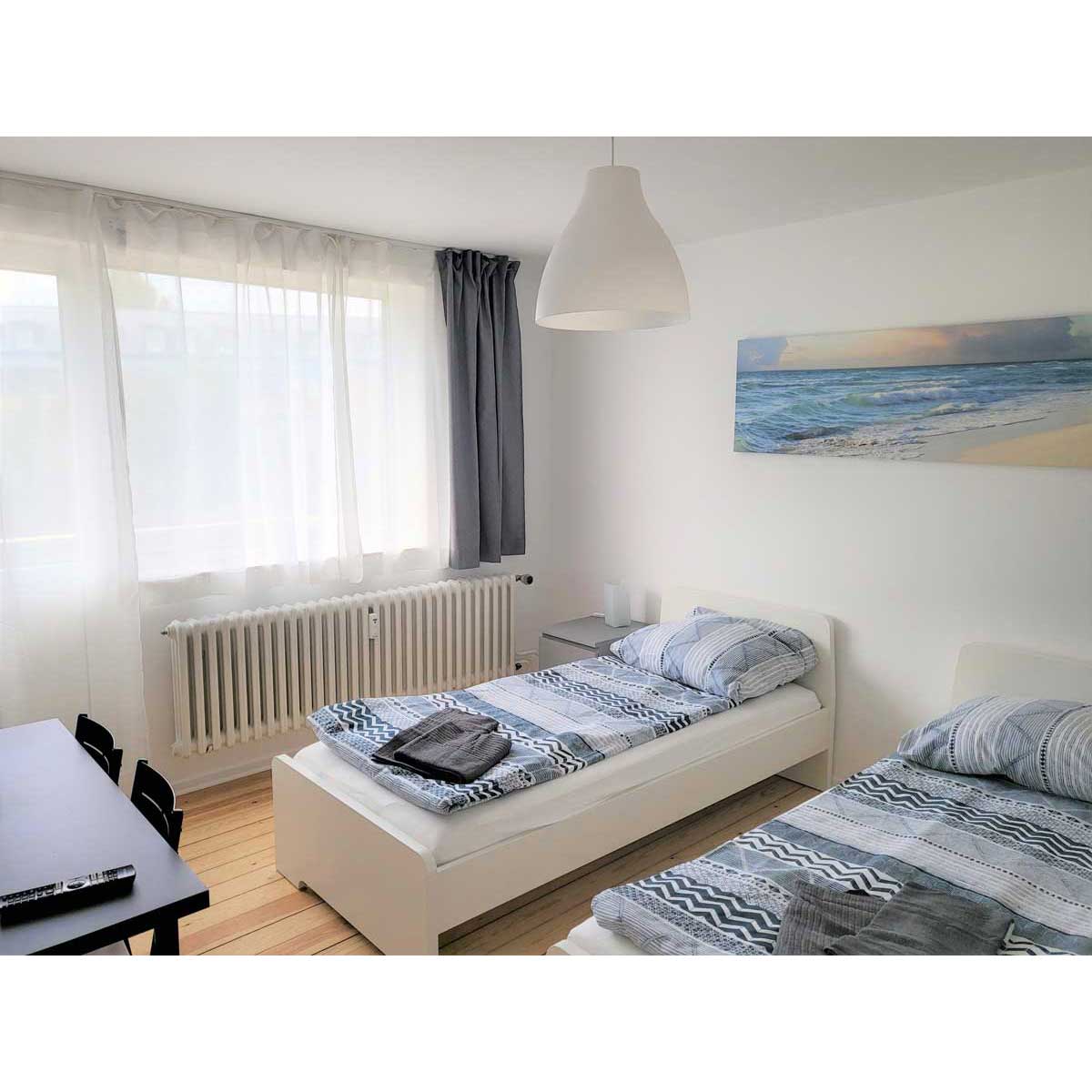 In zentraler Lage von Kiel – Jachmannstrasse 38 in 24143 Kiel-Gaarden – haben Sie die Möglichkeit 54,5 qm große 2 Zimmer Wohnungen mit vier freistehenden Betten zu buchen, gern auch für länger.